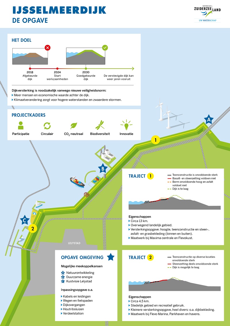 De dijk tussen Lelystad en de Ketelbrug is op dit moment veilig, maar voldoet niet aan de voor de toekomst vastgestelde eisen. Zuiderzeeland wil het project gebruiken om niet alleen de veiligheid te waarborgen, maar ook om de natuur en het landschap te verbeteren en meer recreatie mogelijk te maken.