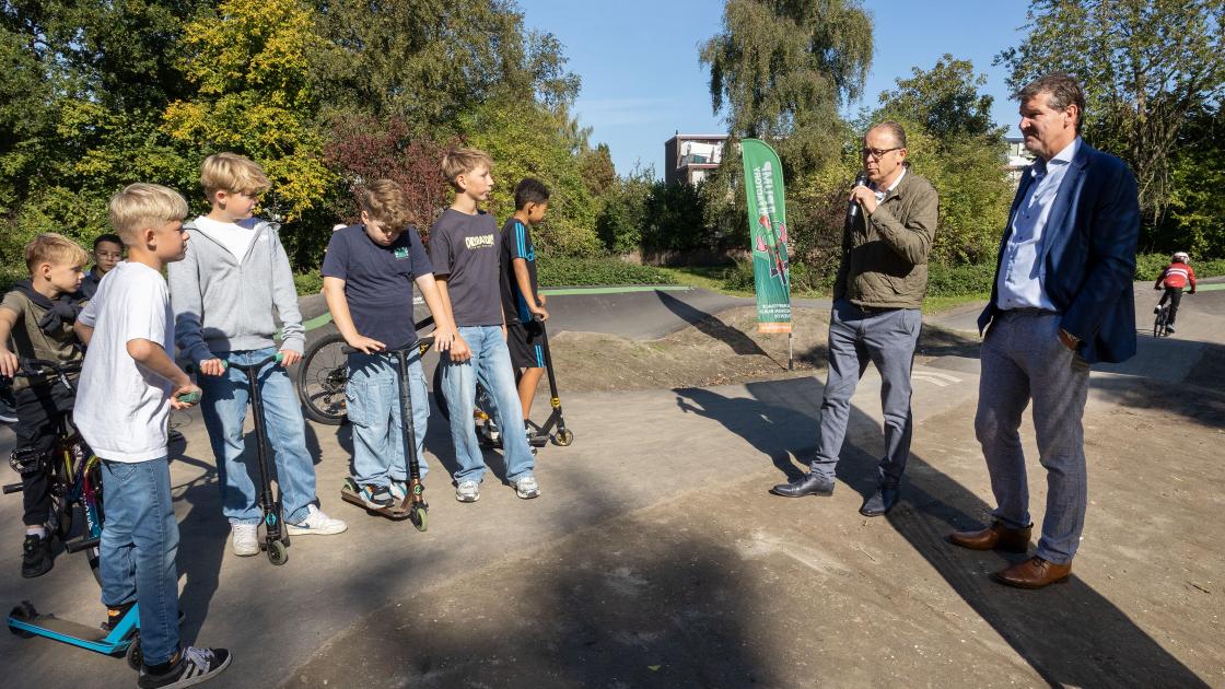 De nieuwe pumptrackbaan (zeg maar een crossbaan voor alles met wieltjes, maar zonder motor) in het Fjordpark is officieel in bedrijf. Wethouder Dennis Grimbergen (midden op bijgaande foto van fotostudio Wierd) en Eelco Derks van het sportbedrijf hebben die gisteren samen met gebruikers geopend, met demonstraties en clinics.