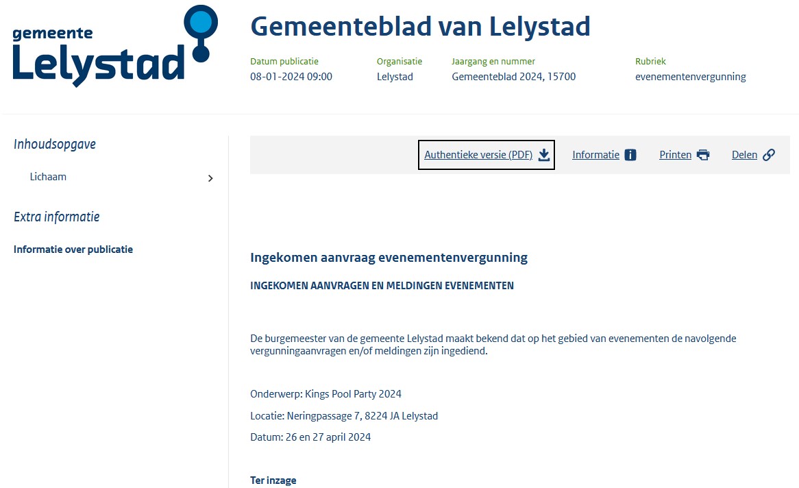 De vergunning voor de King’s Pool Party, een initiatief voor een feest tijdens Koningsnacht en Koningsdag dit jaar bij de Neringpassage en een deel van de Agorahof, wordt definitief niet verleend. Daarmee zal het die nacht blijven bij twee grotere feesten in het Stadshart: één bij Mr. Lely en Applaus, de andere aan de Zilverparkkade bij For Friends, op de locatie van het voormalige De Vier Engelen.