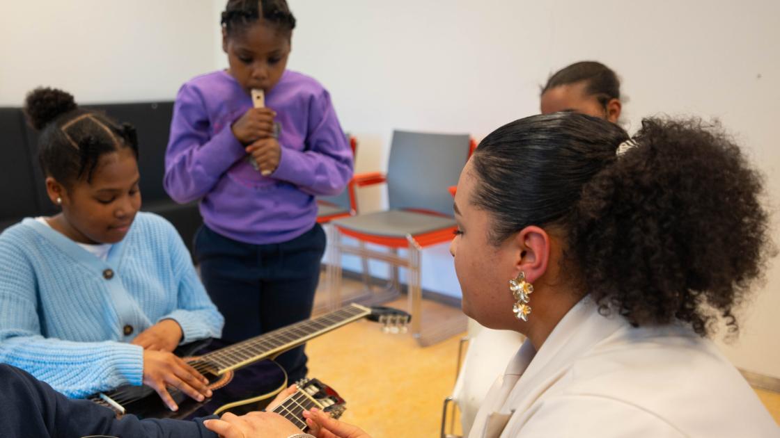 Het mooiste vindt Van der Pool als ze ziet dat de kinderen groeien tijdens de muzieklessen. “Sommigen durven eerst nog niet te zingen, door de lessen heen zie je ze ontwikkelen en durven ze opeens het podium te pakken. Dat ze uit hun schulp kruipen, daar word ik blij van.”