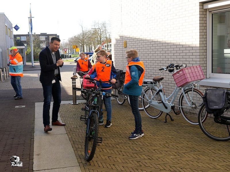 Tijl de Vries van PCBS De Regenboog/Christiaan Huygens werd door wethouder Ernst Bron, die onder meer verkeer in zijn portefeuille heeft, als eerste een parcours opgestuurd dat door de vele wegwerkzaamheden ingewikkelder was dan andere jaren. Na afloop van de rit werden de oranje hesjes door de deelnemers ingeruild voor een mooie appel.
